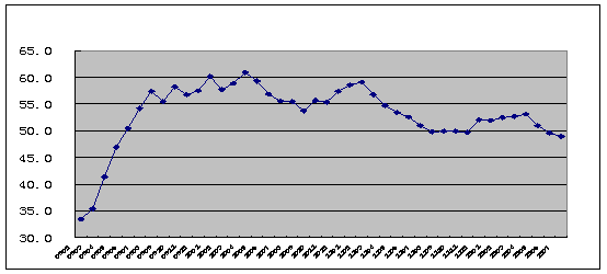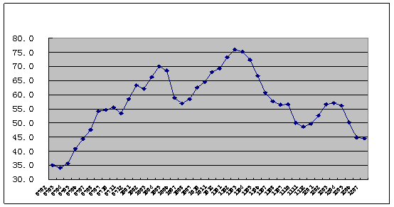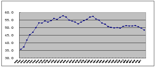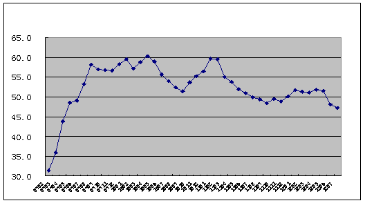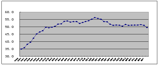 2009年1月-2012年7月全球制造業PMI指數走勢