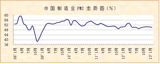 中國(guó)物流與采購(gòu)聯(lián)合會(huì)、國(guó)家統(tǒng)計(jì)局服務(wù)業(yè)調(diào)查中心發(fā)布的2013年2月份中國(guó)制造業(yè)PMI為50.1%,較上月回落0.3個(gè)百分點(diǎn),主要分項(xiàng)指數(shù)也有不同程度回落,但這種回落主要是受春節(jié)因素影響正常性波動(dòng),波動(dòng)幅度小于歷史同期。目前工業(yè)生產(chǎn)形勢(shì)基本平穩(wěn),企業(yè)后市預(yù)期也較為樂(lè)觀,總體來(lái)看經(jīng)濟(jì)運(yùn)行仍處在企穩(wěn)區(qū)間。