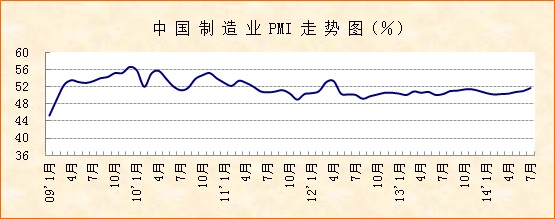 中國(guó)物流與采購(gòu)聯(lián)合會(huì)、國(guó)家統(tǒng)計(jì)局服務(wù)業(yè)調(diào)查中心發(fā)布的2014年7月份中國(guó)制造業(yè)采購(gòu)經(jīng)理指數(shù)(PMI)為51.7%,比上月上升0.7個(gè)百分點(diǎn)。該指數(shù)自今年3月份以來(lái)持續(xù)上升,升幅擴(kuò)大,為今年以來(lái)最大升幅。主要分項(xiàng)指數(shù)保持同步回升,普遍達(dá)到去年同期水平以上。從PMI來(lái)看,當(dāng)前經(jīng)濟(jì)活動(dòng)進(jìn)一步活躍,內(nèi)外需求持續(xù)改善,企業(yè)經(jīng)營(yíng)形勢(shì)向好發(fā)展,經(jīng)濟(jì)增速回升態(tài)勢(shì)初步形成。