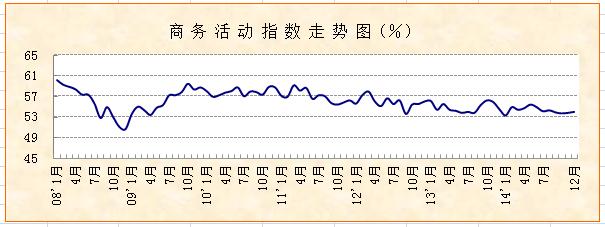 中國(guó)物流與采購(gòu)聯(lián)合會(huì)、國(guó)家統(tǒng)計(jì)局服務(wù)業(yè)調(diào)查中心發(fā)布的2014年12月份中國(guó)非制造業(yè)商務(wù)活動(dòng)指數(shù)較上月小幅上升0.2個(gè)百分點(diǎn),達(dá)到54.1%,顯示非制造業(yè)經(jīng)營(yíng)活動(dòng)保持增勢(shì),增速較上月有所加快。