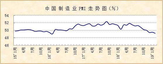 中國物流與采購聯合會、國家統計局服務業調查中心發布的2019年2月份中國制造業采購經理指數(PMI)為49.2%,較上月回落0.3個百分點。從分項指數來看,受春節因素影響,生產有所趨緩,但國內需求擴張,產成品庫存減少,市場價格回暖。目前裝備制造業和高新技術產業上升,大企業穩中有進,市場預期較為樂觀,積極因素有所顯現。